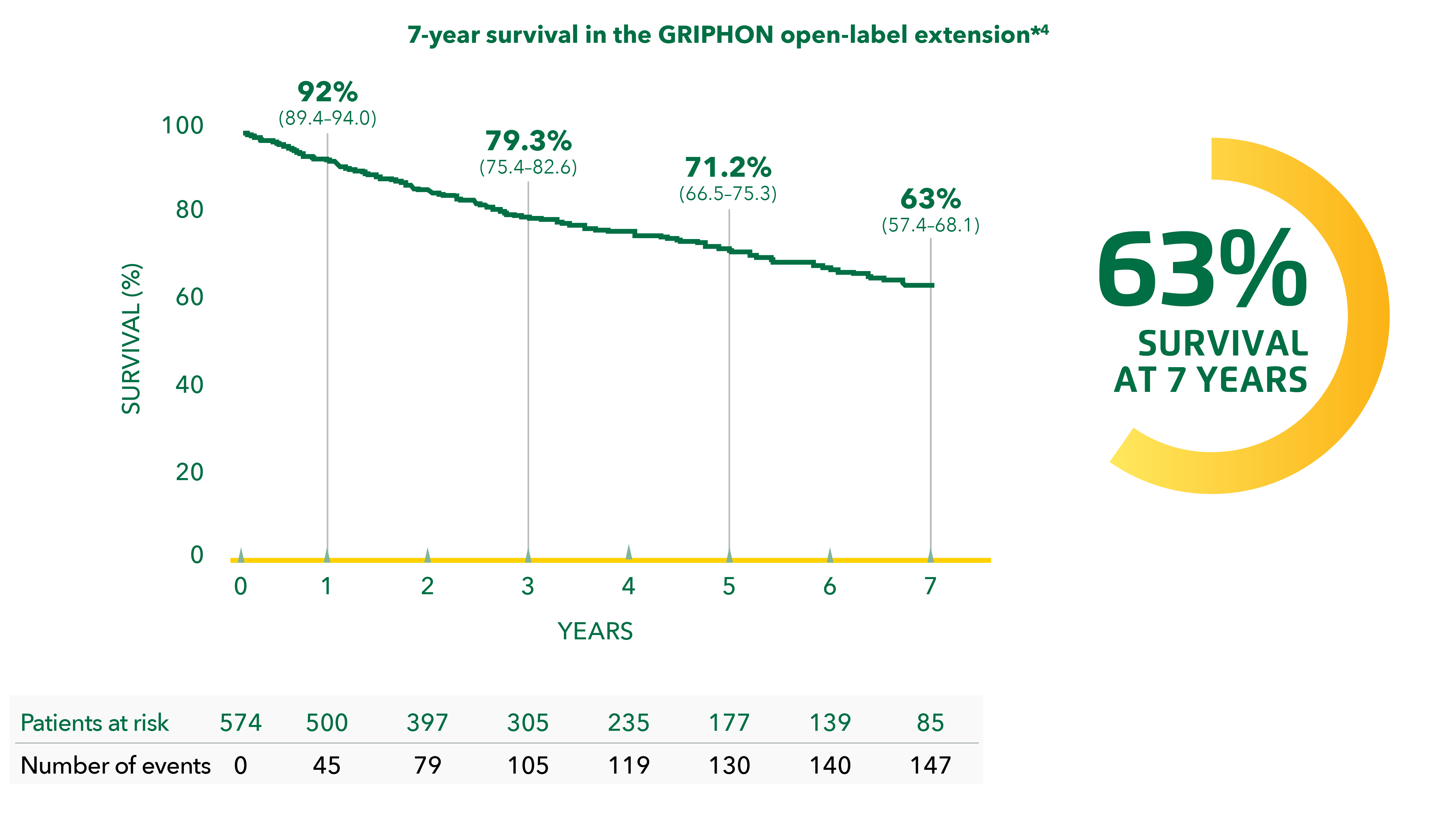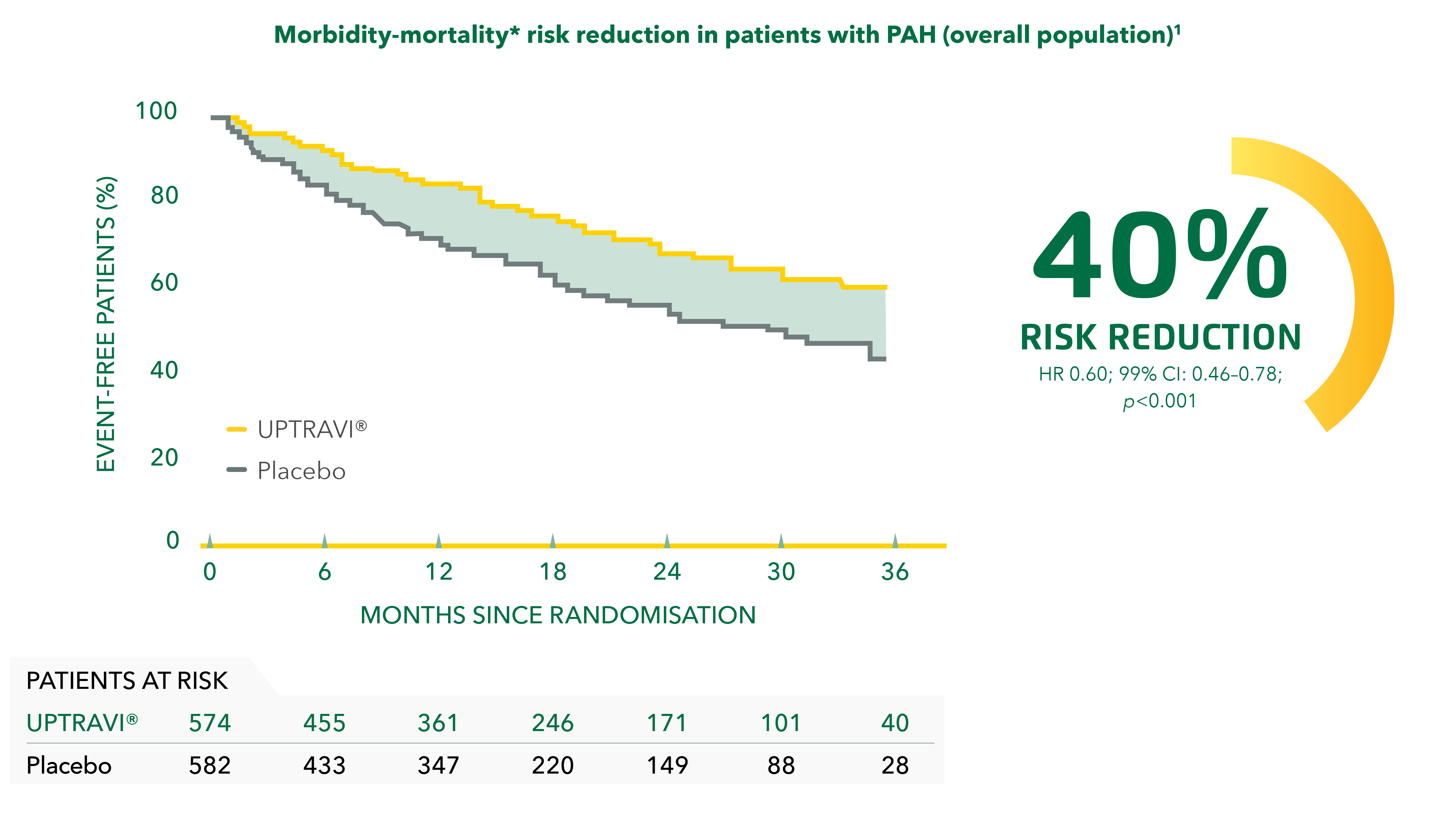 Evidence for the long-term efficacy of UPTRAVI® is based on GRIPHON primary endpoint data, showing a significant reduction in the risk of disease progression vs placebo in patients with PAH.