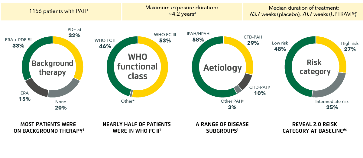 The GRIPHON trial assessed the efficacy and safety of UPTRAVI® across a broad range of patients with PAH.