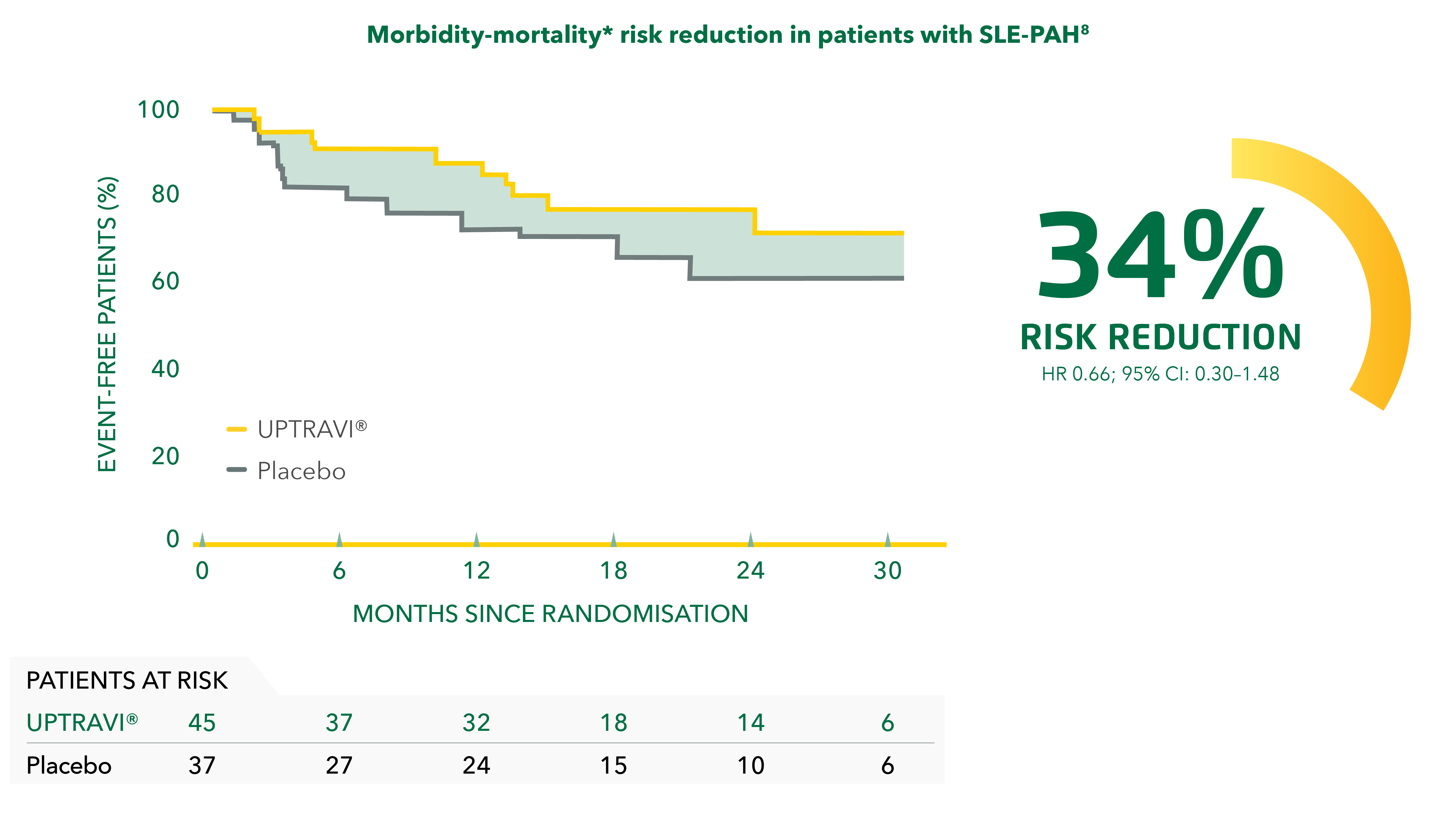UPTRAVI® reduced the risk of disease progression by 34% vs placebo in patients with SLE-PAH.