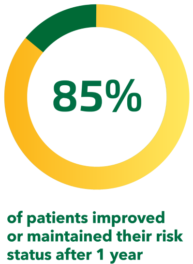 ‡Based on patients who had a risk assessment at both baseline and 1 year (196 patients or 78% of the total population).