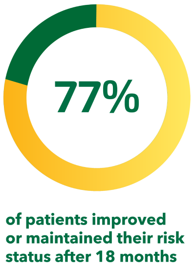 The overall treatment goal in PAH is to achieve and maintain a low-risk status, which has been shown to be prognostic for better long-term outcomes. UPTRAVI® helps patients improve and maintain their risk status in both a clinical trial and the real world.